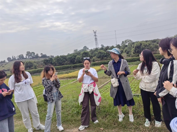 刘毅向学生介绍南方典型水稻土壤微生物群落演替田间试验