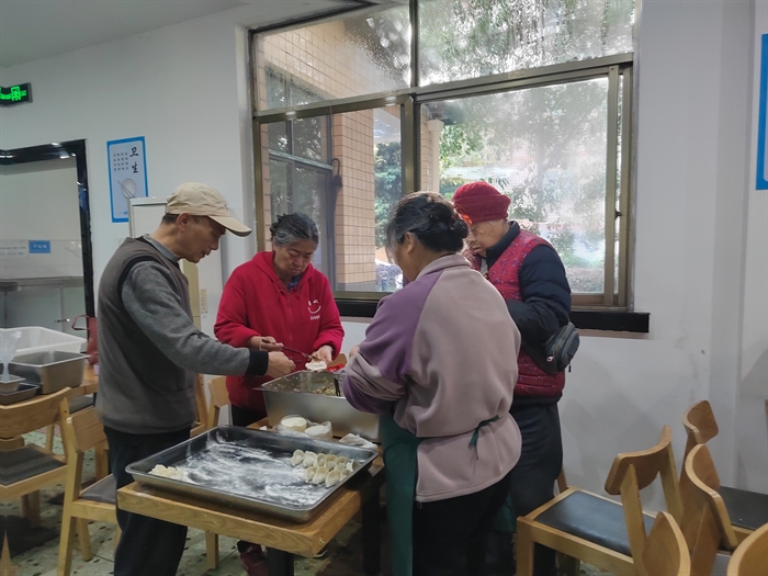 冬至包饺子是亚热带生态所退休职工的传统活动。上午,职工食堂已是暖意融融,退休职工们陆续到来,相见甚欢,互致问候,场面温馨。活动开始后,大家洗净双手,围坐在桌案前,迅速投入到包饺子的“工作”中。洗菜、切菜、调馅、捏合……老同志们分工协作,手法娴熟,各展其能。大家一边手上忙碌,一边亲切交谈,分享过往的工作趣事、交流退休后的生活点滴,回忆往昔奋斗岁月,畅谈当下幸福生活。活动还邀请了高龄老同志齐聚一堂,尝饺子迎冬至,现场笑语不断,其乐融融。