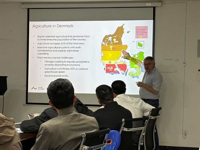 在亚热带生态所学术交流期间,Olesen教授作了题为“Research on carbon and nitrogen cycling of cropping systems in Denmark”的学术报告,详细介绍了其团队在丹麦农业生态系统碳氮循环领域的研究成果与未来研究计划。参会的研究人员与研究生围绕实验设计、长期观测指标、数据分析与论文撰写等问题进行了深入讨论,并就青年科研人员合作交流与联合培养等方面达成了合作意向。