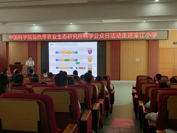 玉米起源于哪里?玉米生理成熟的标志是什么?带斑点的玉米能吃吗?亚热带生态所科普志愿者通过层层递进的讲述,带领漳江小学同学们开启玉米“探索之旅”。课堂上同学们纷纷举手,踊跃回答问题,对科学展现出浓厚的探索兴趣。