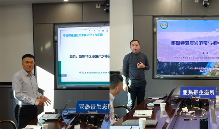 1月14日,贵州师范大学喀斯特研究院李瑞研究员、李渊副教授以国内访问学者身份到中国科学院亚热带农业生态研究所陈洪松研究员团队开展学术交流。