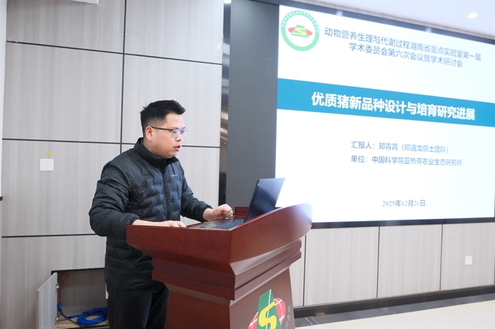 12月26日,动物营养生理与代谢过程湖南省重点实验室2025年度学术委员会会议暨学术研讨会在中国科学院亚热带农业生态研究所召开。本次会议旨在总结实验室2025年度工作进展,交流最新研究成果,规划未来发展。中国工程院院士、实验室主任印遇龙,学术委员会主任江青艳教授,学术委员会委员尹靖东教授、毛胜勇教授、何善平教授和谭碧娥教授,以及实验室科研骨干和管理人员参加会议。