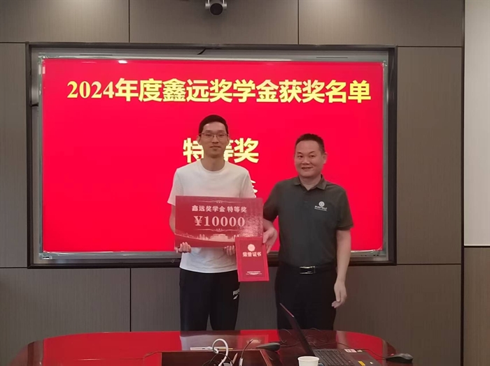 会上,谢永宏代表研究所向鑫远公司设立奖学金表示感谢。胡胜宣读2024年度鑫远奖学金、奖教金获奖名单,现场为获奖师生颁发证书。奖学金特等奖获得者巢传鑫、奖教金获得者邓正苗发表获奖感言。本次奖学金评选考量了申请者学业成绩、科研成果等综合表现,设置了特等奖、一等奖和二等奖,并面向教师设立了奖教金,此次共有16名师生获奖。