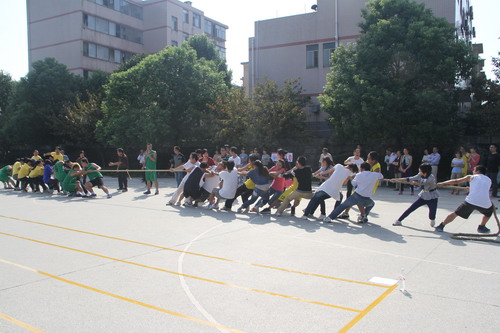 紧接着,精彩纷呈的各类比赛拉开序幕。激烈紧张的拔河比赛把运动会推向高潮,运动员们个个情绪激昂、精神饱满全神贯注,随着裁判一声哨响,双方运动员们突然发力,使出全身力气摆出势在必得之架势展开了最顽强、最“残酷”的争夺战,一度陷入僵持状态。旁边的啦啦队也精神抖擞、热情高涨,在场边“一二、一二”地为自己队加油打气,场面热闹非凡,相当震撼。最后,金井站与桃源站组成的队伍力挫群雄,夺得了拔河比赛第一名。