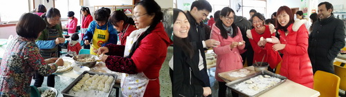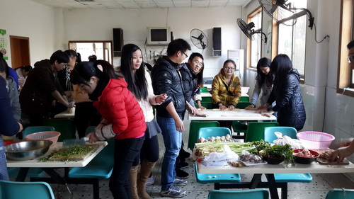 活动于下午14:30正式在所食堂正式开始。大家分工合作,互帮互助,顿时食堂里充满了欢声笑语。两个小时后,每组为角逐“秀色奖”都绞尽脑汁地发挥想象,创作出各式各样、精美绝伦的饺子。