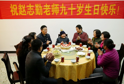 副所长王新洪率所综合办公室人员和老年爱心志愿者一起为一位90岁孤寡老人赵志勤同志祝寿,大家共同围坐在老人身边,唱起生日快乐歌,伴随着歌声和掌声为老人戴上生日帽,祝愿老人健康长寿。在大家的一句句祝福话语中,老人喜笑颜开。王新洪代表所领导班子向赵志勤送上生日慰问金,详细询问了老人的生活起居和身体状况,叮嘱老人要照顾好自己的身体。