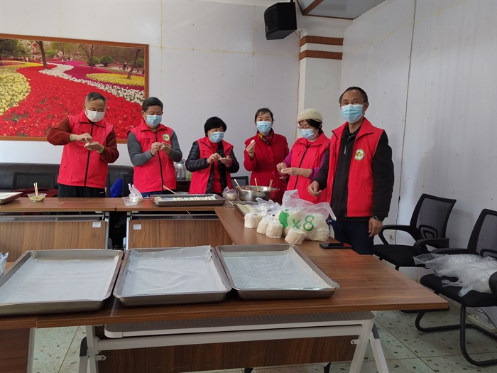 爱心志愿者一起包饺子