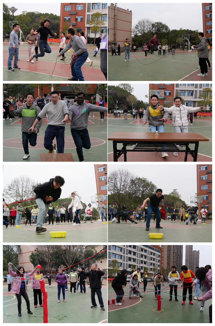 本次活动分集体项目和个人项目两个部分,共设置绳舞飞扬、党的二十大报告极速60S抢答、齐心协力、奋勇向前、撕名牌等项目,融合了知识性、娱乐性、协作性和竞争性为一体。在集体项目比赛中,每个代表队的运动员之间都相互配合、密切协作,充分展示出协同共进的团队精神。