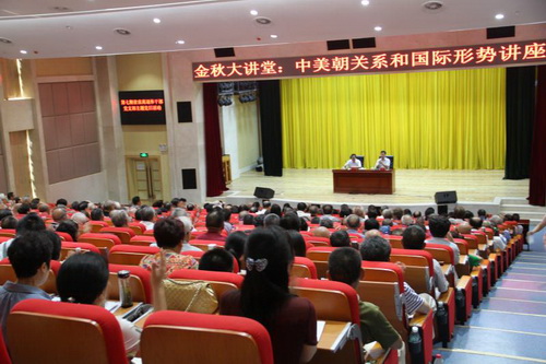 活动分两个阶段进行。第一阶段是组织全体党员面对党旗重温入党誓词。第二阶段是聆听了由外交学院原党委书记兼常务副院长、中国驻埃及等多国大使馆大使袁南生教授所作的《中美朝关系和国际形势》主题报告。