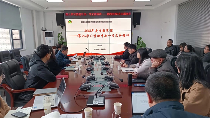 2月25日,中国科学院亚热带农业生态研究所第四党支部开展“学习中央一号文件精神”为主题党日活动。活动由支部书记周传社主持。第四党支部全体党员、入党积极分子和职工参加。