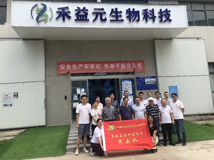 在湘潭市农业农村局局长吴买生带领下支部党员调研了韶山市高新技术产业开发区湖南禾益元生物科技有限公司功能性饲料添加剂植物甾醇酯研发和产业推广情况,支部党员从专业角度出发对企业的产品工艺和应用研发提出了建议。