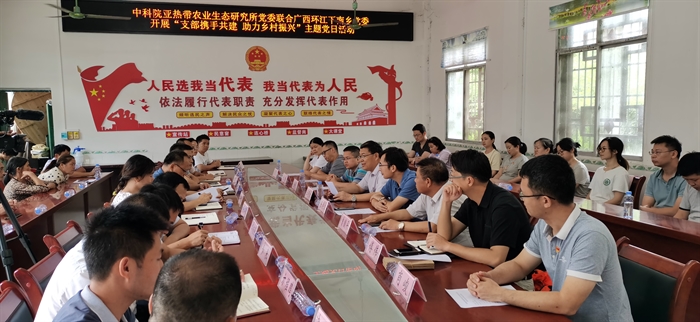 为使党员和职工更好地理解国家战略科技力量的内涵,深刻领悟研究所的定位与战略规划、乡村振兴与学科发展的双向赋能,促使党员和职工在工作学习中聚焦主责主业,增强推动科技创新的责任感、使命感和危机感,实现党建工作与科技创新工作深度融合。9月14日至16日,中国科学院亚热带农业生态研究所第一党支部(简称“环江站支部”)到环江毛南族自治县开展“对标使命定位 明确努力方向”主题党日活动。中国科学院亚热带农业生态研究所党委书记王克林、副所长陈洪松、科技扶贫工作队队长曾馥平和全体党员、职工参加活动。