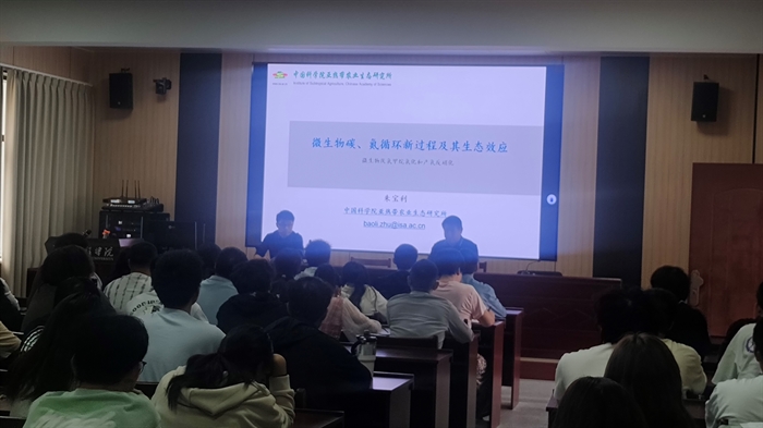 党支部朱宝利研究员还为生命科学技术学院大一新生做了题为“微生物碳氮循环新过程及其生态效应”的报告。他的报告以其求学历程贯穿其中,鼓励新生们提早规划好自己的学习生涯,阐述了开展上述科研工作的思路与成果前景,激发同学们对科学研究的兴趣,达到激发青年学子们积极向上,勇攀科研高峰的热情。