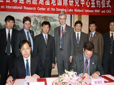 在协议签署前,亚热带生态所与WWF联合组织召开了共建“洞庭湖湿地国际研究中心”论证会。来自地理所、南京地湖所、湖南大学、湖南师范大学、中南林业科技大学以及湖南省人大、湖南省林业厅等单位的20余名科技与管理专家对共建“中心” 进行了认真的研讨。大家一致认为,共建“中心”很有必要 ,它对于开展洞庭湖湿地研究、为洞庭湖流域综合管理提供决策依据与科技支撑均具有十分重要的意义。