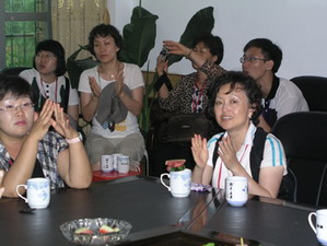 湖南湘丰集团公司总经理王强先生向客人们介绍了湘丰的发展情况。湘丰茶厂在2000年还是一家茶叶年产值仅有180多万元茶叶小作坊,2000年以来和亚热带生态所在茶园遮荫技术、茶园害虫杂草生态控制、茶园覆盖与间种、茶园施肥和人工复合生态茶园建设等关键技术方面开展合作研究,取得了4项国家专利和1项湖南省科技进步奖。企业由于有科技创新的支撑,实现了跨越式发展,在提高茶叶产量的同时也提升了茶叶品质,生产的茶叶各项指标全部达到出口欧盟的标准,湘丰集团发展成为拥有2.8万亩茶园和全国最先进的茶叶清洁化自动化加工生产线,实现年销售收入达1.3亿元,年出口茶叶3600吨,年利税780多万元,全国最大茶叶生产、加工和贸易一体化的农业产业化龙头企业之一。王强介绍说,目前亚热带生态所的科学家们正在进行一项很有前瞻性的工作,就是在丘陵茶园模拟山区生态环境,开展茶园生态系统优化管理研究,该项技术的突破将进一步改善茶叶品质,增加名优茶产量,提高生产效益,促进湘丰集团再上新台阶。