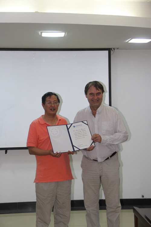 期间,Fran?ois Blachier向印遇龙院士报告了合作项目法方研究工作的进展情况,并向与会的亚热带所科研人员和研究生作了学术与科技论文写作培训报告。印遇龙为Fran?ois Blachier颁发了中国科学院外国专家特聘研究员证书。与会科研人员与Fran?ois Blachier进行了深入的交流,并就进一步的合作研究进行了讨论。