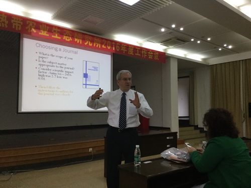 3月21日,应中国科学院亚热带农业生态研究所畜禽健康养殖研究中心印遇龙研究员的邀请,Journal of Animal Science主编James L. Sartin教授到该所进行交流。此次交流,Sartin作了题为Surviving the review process: an editor’s perspective的报告,详细介绍了动物营养领域Top期刊Journal of Animal Science的写作要点,从一个主编的角度提出投稿时和稿件修改时的注意事项。报告内容引起了参会人员的强烈兴趣,该所师生分别对文章撰写的英语语法问题、投稿的审稿人选择和试验的处理和重复数等问题进行了深入的交流。同时,双方对下一步在中国举办国际会议达成初步合作意向。随后,Sartin参观了该所同湘潭畜牧局联合建设的砂子岭生猪标准养殖示范基地,并就砂子岭生猪的养殖过程和基地建设等提出了建议。