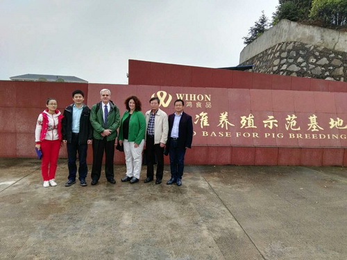 Sartin教授参观砂子岭猪标准养殖示范基地并同管理人员合影