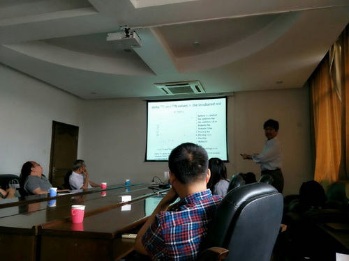 访问期间,Inubushi就稻田生态系统温室气体排放、碳氮稳定同位素技术、稻田肥力调控等相关的前沿领域与亚热带生态所的相关科研骨干和研究生进行了深入的交流和探讨,并做了题为C and N dynamics in paddy soil ecosystem and stable isotope techniques学术报告,详细介绍了日本在稻田肥力提升,温室气体控制及其减排机制等。李倩结合她的学位论文工作做了题为Effect of fertilizers on greenhouse gas emission from paddy soil and rice growth的学术报告。报告内容引起了参会人员的强烈兴趣并展开热烈讨论。报告结束后,他们还与相关研究生就实验设计、论文撰写、数据整理与分析等方面开展了详细的讨论,