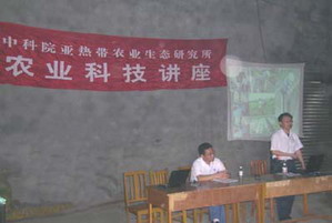 在桃源县漳江镇城北村,该所科研人员开展了三项科普活动:一是科技讲座。针对该村土地几十年来种植蔬菜不注重地力培育与养护,土壤肥力逐步下降,土壤质地不断老化,病虫害日趋严重,导致蔬菜不能正常生产,经济效益逐年下降的情况,科研人员作了“桃源县城郊老菜园土的主要问题及改良对策”和“无公害蔬菜栽培技术”二场科普报告。科研人员以风趣的语言,渊博的知识,借助多媒体投影仪,图文并茂,深入浅出,为200多位听课菜农献上了一顿丰盛的科技大餐;二是科技咨询。在村部的科技咨询台前,人头攒动,十多位科技人员耐心为农民解答各种疑难问题;三是发放科技资料。科技人员带去了农业科技书籍和根据当地生产需要而精心编写的10余种数千份农业科技资料发放给农民。
