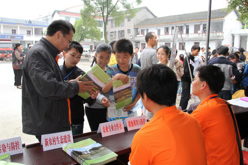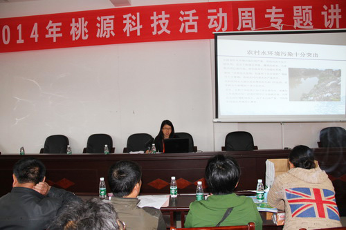 启动仪式当天安排了两大内容:一是资料发放与现场咨询。先后发放由桃源站编印的《环境污染与食品安全》科普宣传册300余份,该宣传册从食品安全的概念、环境污染与食品安全的关系、如何加强对食品安全的源头保护几个方面出发,用通俗的语言,鲜活真实的事例,向现场农民群众和中小学生展示了农村环境保护的重要性。还发放《农家致富顾问》等期刊杂志200余份,健康养殖、作物栽培、生态农业等方面的技术资料2000余份,并进行了现场咨询,解决了一些农民急需的技术难题。二是技术讲座,桃源站副站长秦红灵博士作了“农村环境污染与保护”专题讲座。报告图文并茂、深入浅出,提高了农民朋友对土地合理施肥、农村污染防控与生态环境保护等方面的科学认识,吸引了大批群众前来听讲。