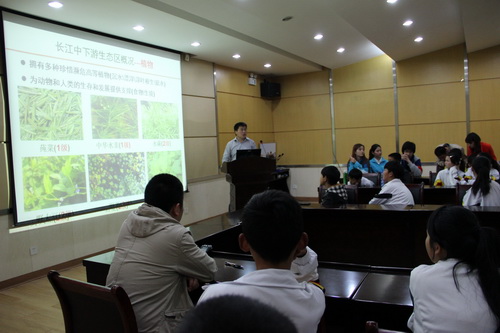 此次活动共安排了四大内容。一是生物多样性保护教育活动。首先由洞庭湖站李峰副研究员做了题为“长江中下游湿地生物多样性及保护”的报告,详细介绍了长江中下游地区湿地生物多样性的现状、多样性丧失的原因及保护对策。随后在站相关人员的带领下,参观了湿地标本馆,重点了解了洞庭湖湿地生物多样性的现状,增强了青少年对生物多样性的保护意识;二是在站科研人员的带领下参观了洞庭湖站综合试验场,详细听取了站科研人员有关科学实验设计、循环湿地农业、湿地恢复及湿地资源利用等知识的讲解,使青少年认识湿地的重要功能和科学家在湿地保护中所做的努力;三是组织学生观看了越冬候鸟小白额雁迁徙的4D电影,使青少年学生认识候鸟的迁飞历程,培养青少年爱鸟、护鸟的意识;四是讲解了麋鹿的历史和保护现状,并介绍了麋鹿在洞庭湖的分布情况,通过喂食麋鹿,使学生了解了生境多样性保护的意义,增强了青少年学生在野生动物保护中的参与意识。
