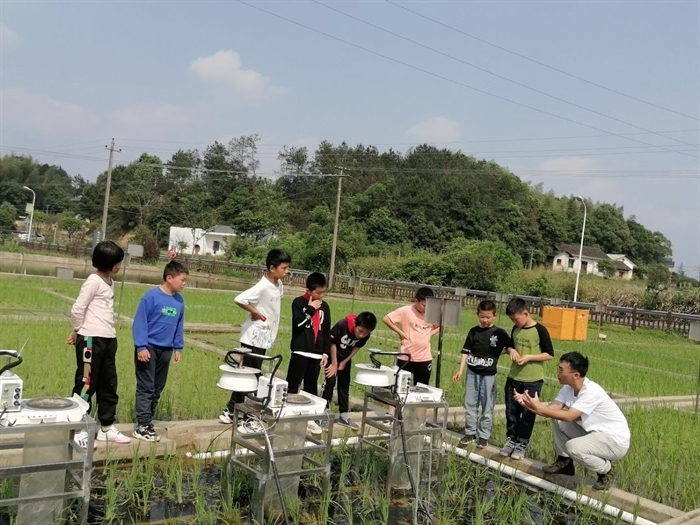 亚热带生态所张树楠副研究员、张苗苗工程师、杨正宇硕士、夏梦华博士带领学生们以“植物种类知多少”“稻田温室气体采集体验”“水质的奥秘解码”“探秘微观生态系统”等为科学探索主题,依托绿狐尾藻人工湿地、气象(大气沉降)观测园、温室气体排放监测静态箱、称重式蒸渗仪观测系统等场地和观测设备,开展了长沙站植物多样性调查、现场操作掌握水质检测的方法和过程,了解不同水体中水质参数的差别;了解稻田生态系统的组成,了解稻田温室气体排放的对环境的影响,认识到研究稻田温室气体排放的重要性;了解生态系统的主要构成主体,理解生态系统中的非生物环境及生命系统之间的联系和作用方式,增强学生对生态系统的理解。