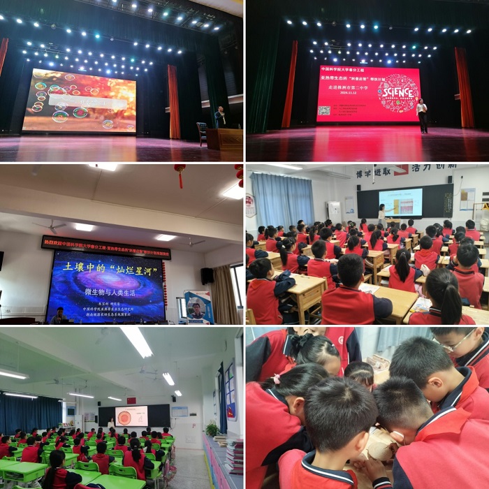 为深入贯彻落实习近平总书记关于科普工作的重要论述,11月12日,中国科学院亚热带农业生态研究所“春分工程”志愿者团队走进株洲市第二中学、株洲市二中田心中学、株洲市第二中学附属小学、株洲市青龙湾小学开展了9场科普报告,为1800多名学生普及科学知识、弘扬科学精神。