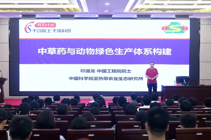 中国工程院院士、亚热带生态所印遇龙研究员在湘西民族职业技术学院和吉首大学分别作题为《食用猪和医用猪产业发展规划》《中草药与动物绿色生产体系构建》的科普报告,分享食用猪和医用猪产业发展现状、市场前景、发展瓶颈及有效解决路径,中草药在养殖中应用的历史,天然植物饲料在健康养殖中的应用,我国中草药资源发展问题及解决办法,中草药在养殖业应用的前景展望等内容。
