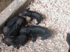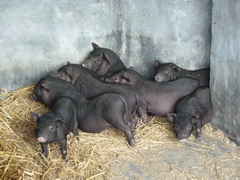 产区群众饲养香猪大多数是各家各户的分散经营,目前还没有大型规模化养猪场。饲料以青饲料为主,精、粗饲料用得很少。青饲料主要有红薯藤、甘蔗叶、芭蕉芋茎叶、芥兰包、牛皮菜等,秋冬季节青饲料供应不足时,便采集青麻叶、莎树叶、革命菜、车前草等野生饲料补充;精饲料主要是稻米、玉米、黄豆、木薯糟等;粗饲料主要是直出糠及其它农副产品。香猪的饲养管理仍较为粗放,基本上仍沿用传统的熟喂方法,即把青饲料及精、粗饲料同锅煮熟成粥状,喂时适当冲稀,一天喂2~3餐,哺乳母猪有的喂四餐。