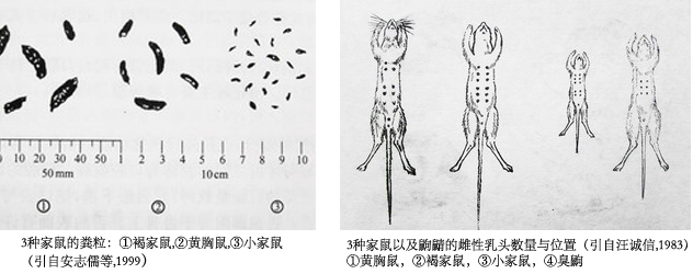 一旦逮到鼠,则可依前述的3种鼠形态特征作鉴别。若是成年雌鼠,看其乳头数量和位置也可区分:褐家鼠6对乳头,胸腹各3对;黄胸鼠和小家鼠都只有5对乳头。但黄胸鼠是胸部2对,腹部3对;小家鼠却是胸3对、腹2对。