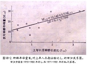 由图Ⅷ-1可见,M4>0.5时,线性关系极明显,足见开春基数高是种群数量上升的重要条件。