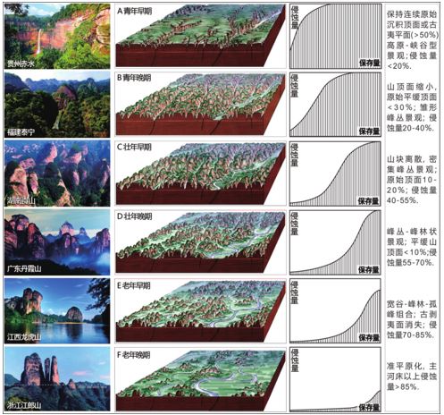 图2 中国丹霞系列世界自然遗产地景观特征及其地貌演化阶段[3]