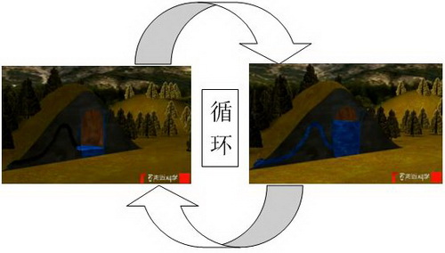 山体中有一个储水空间,这个储水空间不会很大,在储水空间中的水高度不会高于虹吸管道的最高点时,水流以出渗为主;当储水空间中的水高度大于等于虹吸管道的高度的时候,以虹吸出流为主。所以就形成了多潮变化,多周期型的变化。当上游所补给的水源稳定时,泉水便会一会流出一会停止。当上游补给水来源不稳定的时候,会出现相当长的一段时间不会大量出水。这也就是为什么有的人能喊出水,而有的人喊不出水的情况,泉并不能分辨声音,也没有泉对人有喜好选择的神话说法。