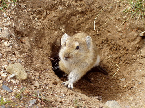高原鼠兔(Ochotona curzoniae)长着一对小巧的耳朵,身体是圆球形的、没有尾巴,性如鼠,形似兔,故名“鼠兔”, 生活在青藏高原的草地上。它最喜欢栖居在气候比较温暖湿润,阳光充足的宽谷、滩地和坡麓地带的草甸草原中。高原鼠兔一年繁殖一次到两次,在气候较暖的地区当年生的幼鼠就能参与繁殖,每胎3-8只。它们常年昼夜活动,不冬眠。在寒冬腊月,地面温度降低到-20摄氏度时,仍能照常出洞觅食。每当夏季来临,高原鼠兔活动更为频繁,有时能跑到数百米外的地方去觅食。