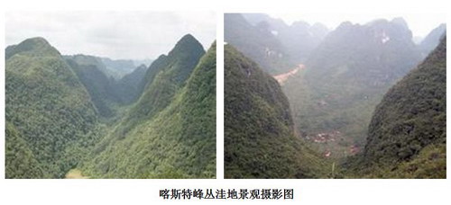 碳酸盐岩层经强烈的垂直溶蚀作用后,形成基座高低不一的溶蚀山峰,聚集成簇,溶峰多为锥状或塔状,即峰丛,峰丛间形成面积比较大的圆形或椭圆形封闭洼地。这样的峰丛与洼地的地貌组合便构成了喀斯特峰丛洼地景观,通常洼地底部也有落水洞或竖井发育。这种喀斯特景观类型广泛分布于我国广西西部、广西东北部、贵州南部及云南东南部地区。