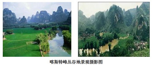 许多峰丛(峰林)谷地不断扩大相连,溶蚀作用与河流的侵蚀作用都很明显,形成具有较厚松散地层覆盖的类似平原地形,并伴有残留少数孤峰,构成喀斯特平原景观,桂林漓江山水和广东肇庆的溶峰都属于这类喀斯特地貌景观,这种地貌类型的地下岩溶水也较丰富,易产生岩溶塌陷。