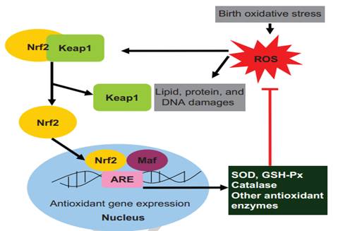 中国科学院亚热带农业生态研究所印遇龙研究员科研团队最近以仔猪为模型,系统地研究了出生造成的氧化应激及仔猪在出生后21天内机体抗氧化系统发育情况。结果表明由于新生仔猪机体抗氧化系统薄弱,致使仔猪在出生后第一周内遭受到严重的脂质、蛋白质和核酸的氧化损伤。而随着抗氧化系统的发育,仔猪在第二周和第三周所受到的氧化应激逐渐降低,恢复至氧化平衡。同时,研究者们发现出生造成的氧化应激能够激活相关氧化信号通路,如Nrf2信号,进而反馈调节机体抗氧化基因的表达以及抗氧化酶的释放,最终促进抗氧化系统的发育(如图)。