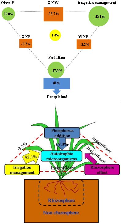 图1 水分管理、磷肥施用和根际效应对碳同化功能微生物的影响