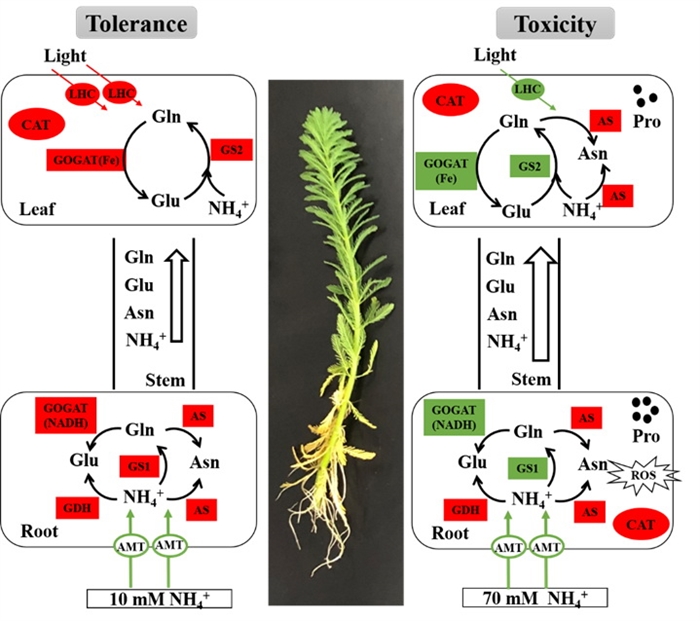 养殖废水中高浓度铵的去除是治理农业面源污染的热点和难点问题。利用绿狐尾藻构建的人工湿地,在控制农业面源污染特别是高铵污染废水具有显著效果。但绿狐尾藻耐高铵的分子生理机制仍不清楚。
