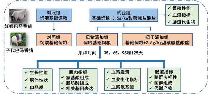 甜菜碱用于巴马香猪“母子一体化”营养干预研究流程图
