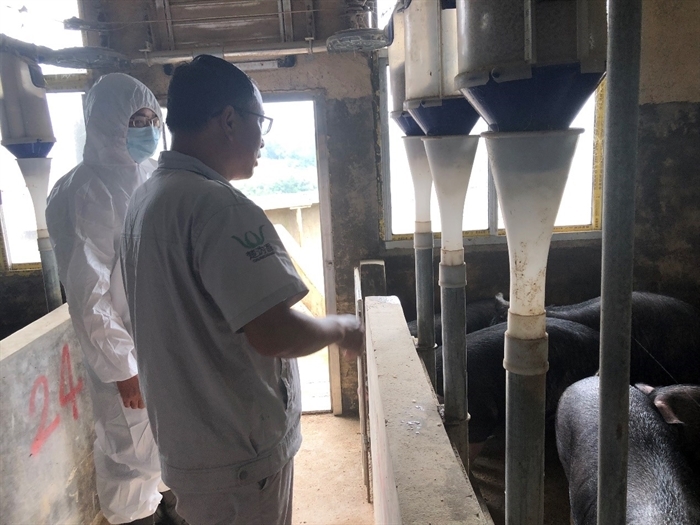 监理组专家与猪场管理人员交流巴宁猪应用情况