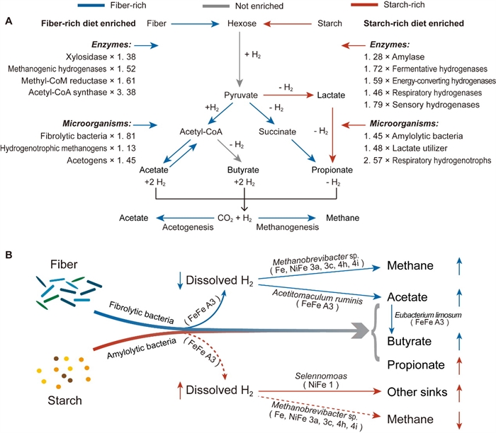 反刍动物可将人类不可食用的植物饲料转化为高营养价值的动物产品,对于确保全球食品安全至关重要。然而,瘤胃微生物在降解碳水化合物过程中还会产生温室气体甲烷,其增温潜能值是二氧化碳的28倍。反刍动物胃肠道甲烷已成为人类农业活动的最大排放源,受到了国际社会的广泛关注。研究表明,日粮碳水化合物结构可改变瘤胃微生物的组成和功能进而影响甲烷生成,其中的氢代谢规律尚不明晰。