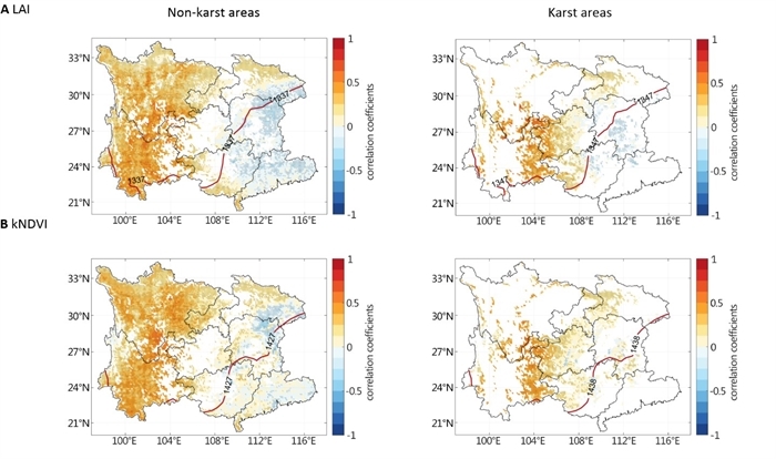 中国西南地区拥有全球最广泛的喀斯特地貌,其生态系统因独特的地质条件而对气候变化表现出高度敏感性。王克林研究员团队的前期工作显示,大规模生态工程已使该地区在过去20年里显著“变绿”。然而,全球变化背景下近年来该地区极端干旱事件频发,加剧了植被恢复生长的不确定性和风险。因此,科学区分不同地质背景下植被对气象干旱的敏感性,确定植被敏感的降水阈值,对支撑西南地区“变绿”的可持续性至关重要。