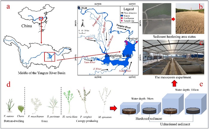 气候变化和人类活动加剧(如大坝建设)在一定程度上改变了湖泊固有的水文节律,使湖泊成为世界上最受威胁的生态系统之一。沉水植物作为湖泊中主要的初级生产者,对维持湖泊生态系统的稳定起重要调节作用。自2010年来,洞庭湖沉水植被退化严重,部分区域甚至消失,对湖区生态环境健康构成较大威胁。自三峡大坝运行后,洞庭湖水文情势巨变,旱季延长,落水期提前,使以前未暴露的湖底出露时间延长,在旱季出现了大面积的底泥板结现象。然而,有关底泥板结对沉水植被的影响以及特定水文条件改变后如何恢复是当前面临的新情况,新特征。