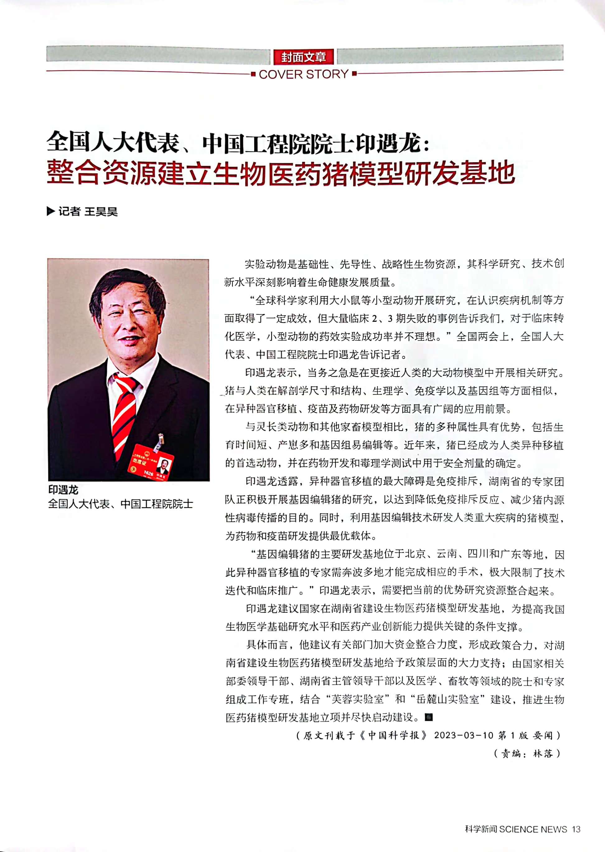 【科学新闻】整合资源建立生物医药猪模型研发基地