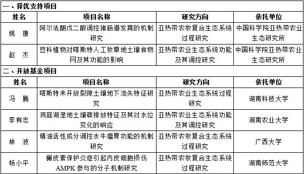 截止到2016年4月30日,重点实验室共收到择优支持项目6项,开放基金项目10项。根据中国科学院亚热带农业生态过程重点实验室《2016年度基金课题申请指南》及《重点实验室开放基金申请及管理办法》的要求和专家评审意见,经过重点实验室学术委员会讨论通过,决定资助择优支持项目2项,开放基金项目4项,共计6项。具体项目名单如下: