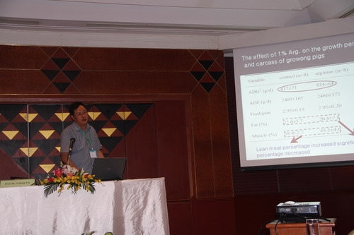 本次会议就动物营养与环境安全等健康养殖的最新研究进展与未来发展方向开展了多方面的交流。中科院亚热带农业生态研究所畜禽健康养殖中心主任印遇龙研究员应邀在会上作学士报告,他主要就近年来在营养与环境方面的研究中取得的“安全环保型日粮”、“肠道内环境与氨基酸转运和蛋白代谢”、“健康养殖与环境安全研究进展”等方面的研究成果进行了介绍,得到国际领域同行的充分肯定。