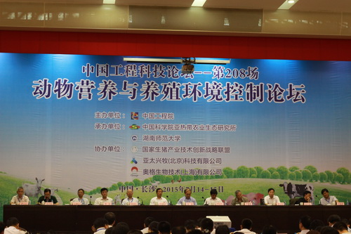 由中国工程院主办、中国科学院亚热带农业生态研究所和湖南师范大学承办、国家生猪产业技术创新战略联盟等单位协办的“中国工程科技论坛(第208场)——动物营养与养殖环境控制论坛”于7月14日至15日在湖南省长沙市湖南宾馆盛大召开。亚热带生态所副所长谭支良主持开幕式,会议主席亚热带生态所印遇龙院士致欢迎辞,来自中国工程院副院长刘旭、湖南科技厅副厅长罗亚军、湖南师范大学书记李民、湖南省农科院院长邹学校纷纷致辞。此外,还有中国工程院夏咸柱院士、湖南农业大学校长符少辉研究员、内蒙古畜牧科学院卢德勋研究员、四川农业大学王康宁教授、浙江大学刘建新教授等出席了开幕式。