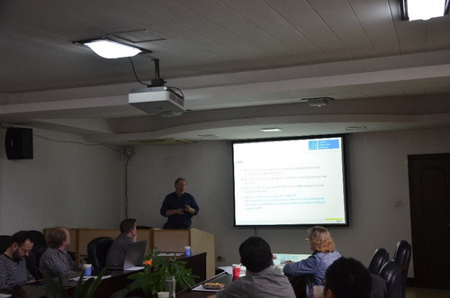访问期间,Georg围绕水稻土碳氮循环、水稻土有机-无机复合体、土壤有机质和矿物的相互作用以及对土壤有机质稳定化过程的影响等领域的最新研究进展、新技术与亚热带生态所部分研究人员、青年骨干和研究生作了深入的交流和探讨,并对相关研究生的进展进行了指导,对下一步的工作提出了指导性的方案和建议。访问期间,Georg围绕铁循环微生物还原过程的最新进展,作了题为Microbially  induced transformation and mobilization of Fe-organic associations in soil的学术报告。报告内容引起了参会人员的强烈兴趣并展开热烈讨论。